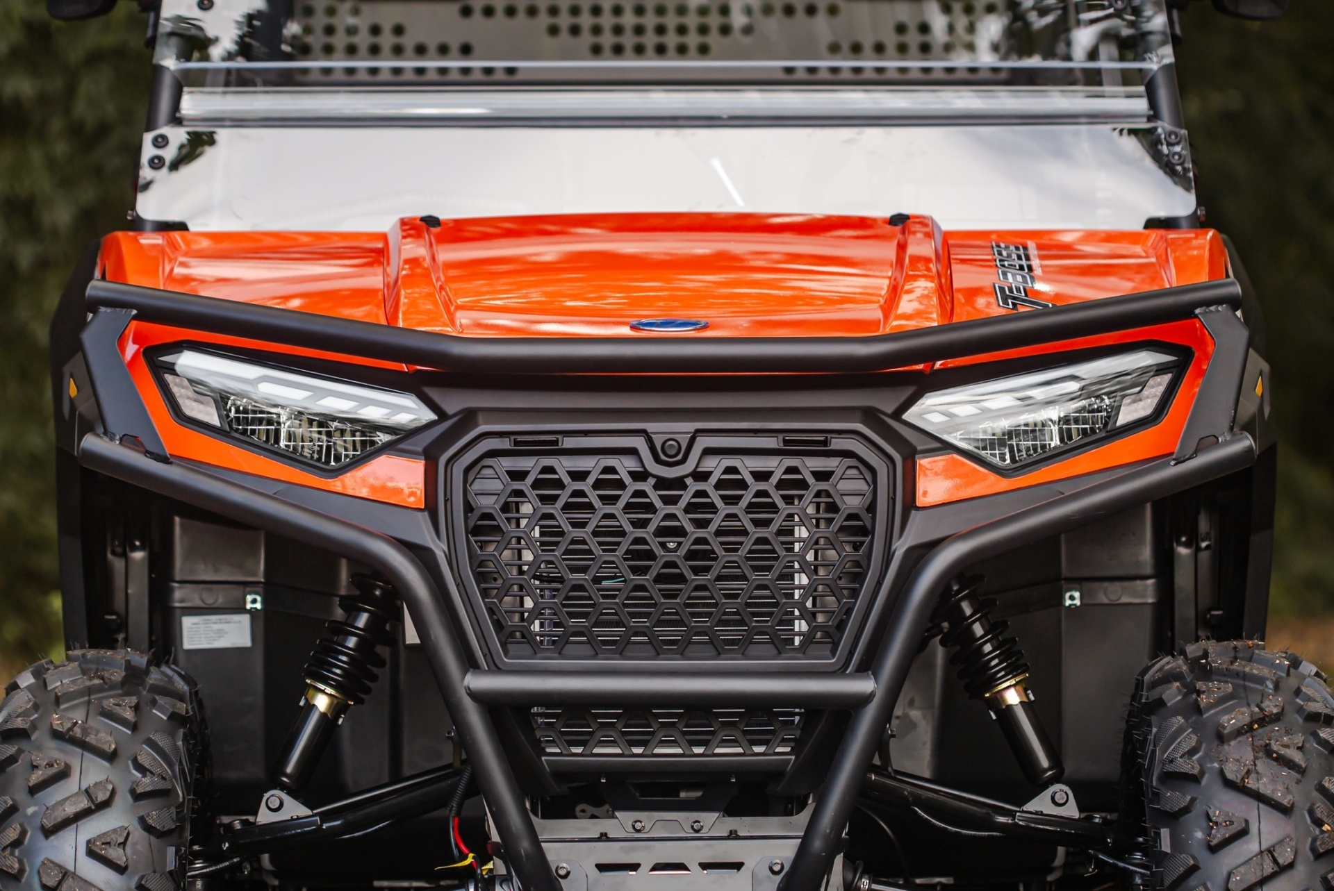 Masivní přední ochranný rám chrání světlomety i celou přední část stroje před poškozením způsobeným větvemi, nárazy a dalšími překážkami v terénu.