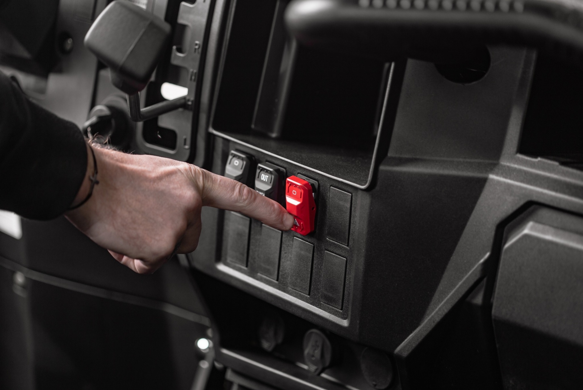 Volant, řadicí páka i spínače jsou rozmístěny přesně tak, aby ovládání bylo intuitivní a přirozené. Všechny funkce máte okamžitě po ruce, nic vás při jízdě nerozptyluje a nad strojem máte neustálou kontrolu.